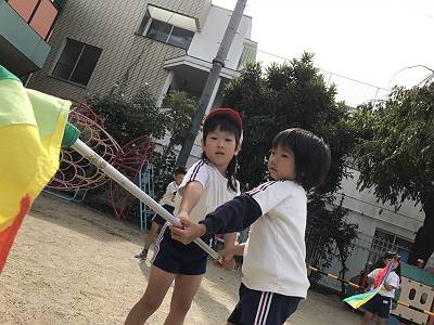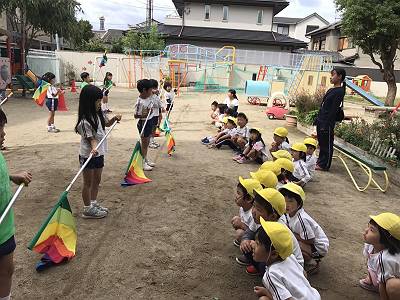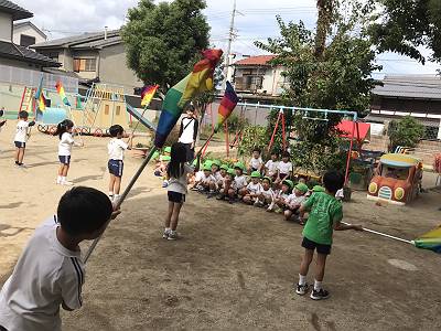 園庭ではカラーガード