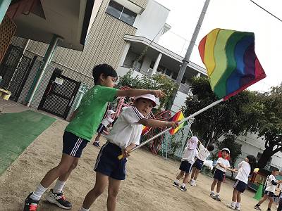 虹色の旗を振ると