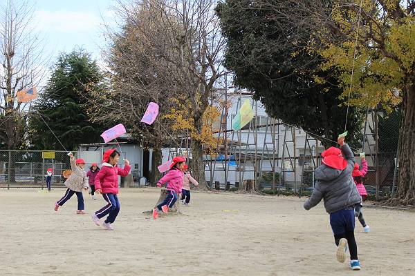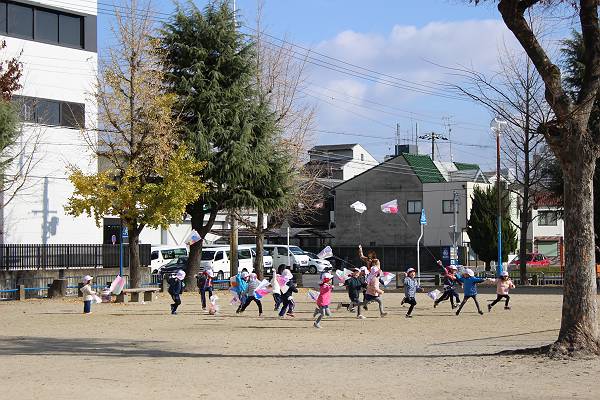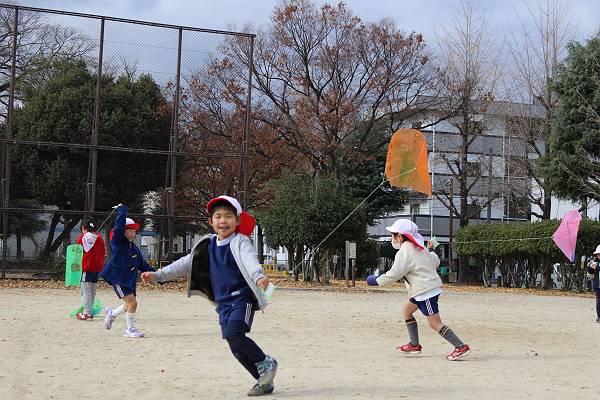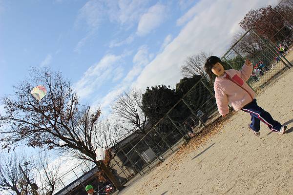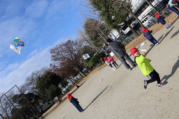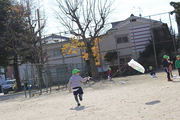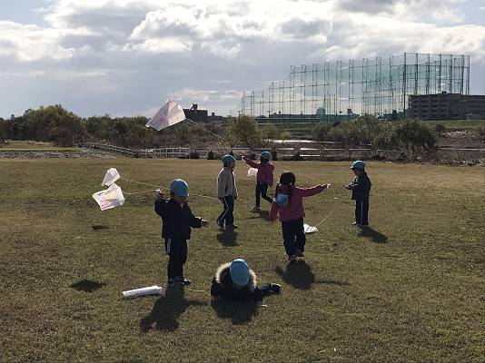 幼稚園生活では最後の凧あげ…