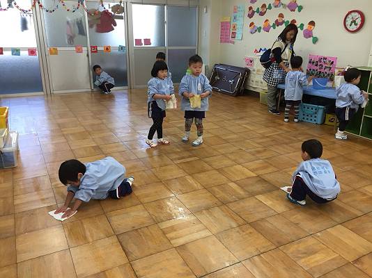雑巾で床や窓をふきふきふき…