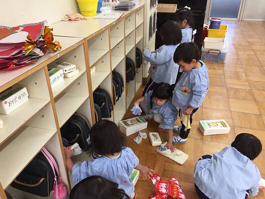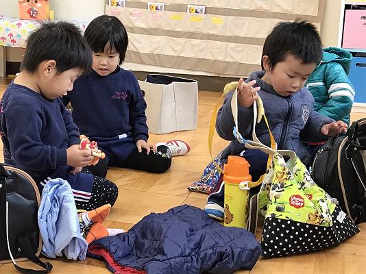 ご用意が終わった子どもたちはお友達と