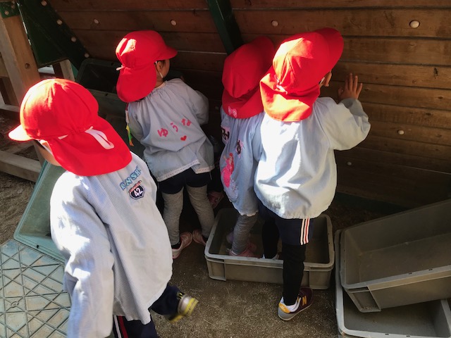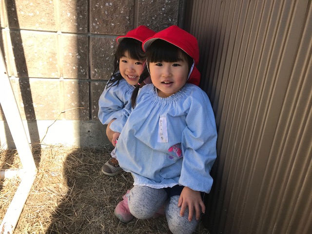 お外では、何やら子どもたちが隠れています