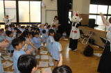 ほかにも、バイオリンの音色に合わせてウサギさんと一緒にお遊戯をしたり、「勇気100%」