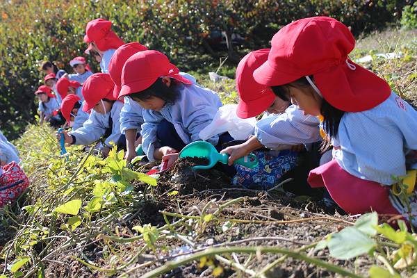 秋の味覚を収穫した帰り道、子どもたちみんなでどうやって食べるかについての話で盛り上がりました