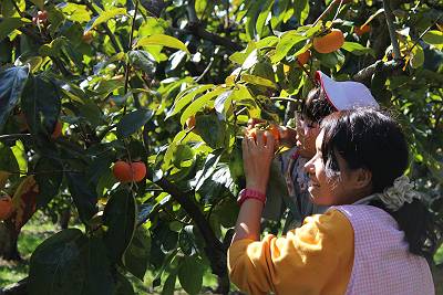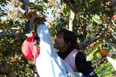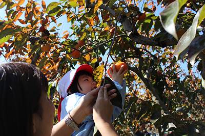 とてもいい秋晴れの中、大根と柿を採りに行ってきました!