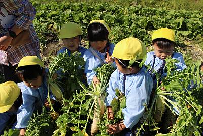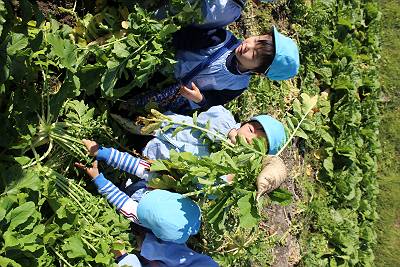 黄組さん、毎年恒例のお芋ほり 大根抜きに行きます!