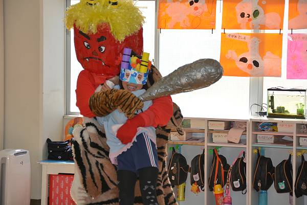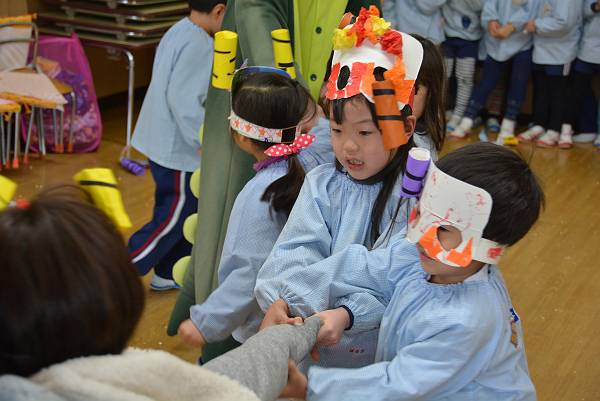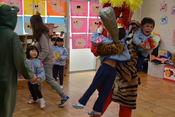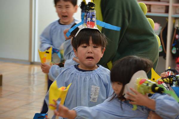 先生たすけてーーー!結構たくましくなってきた黄組さん、とはいえさすがに乱暴な鬼はこわいもの
