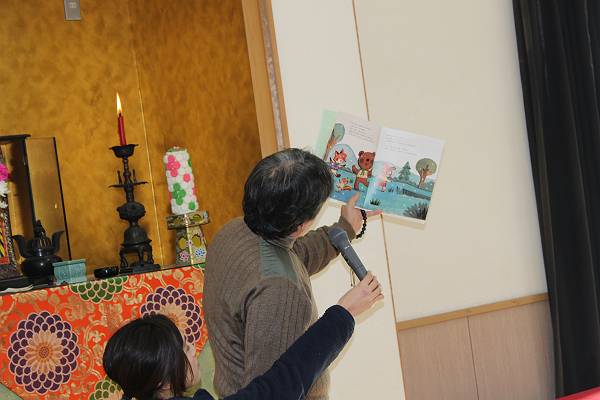 和太鼓を思いっきり楽しんだ後は恒例の園長先生による絵本