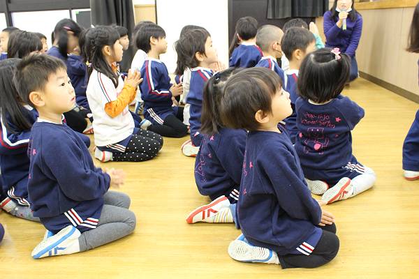 最後はみんなで講堂でお帰りをして絵本を読みました