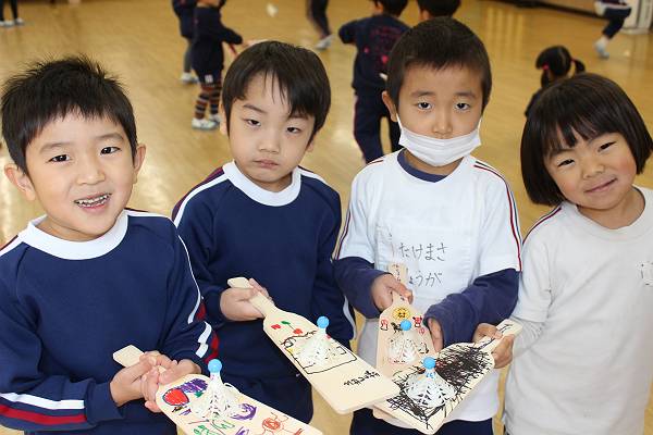 羽子板遊び楽しかったね。自分だけのオリジナル羽子板にみんな大満足☆