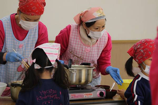 たくさんの保護者の皆様のお手伝いのおかげで今年も無事におもちつきを行うことができました