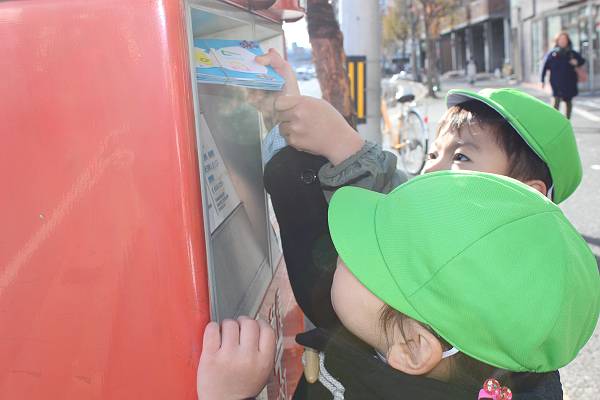 昨日の桜組さんに続いて黄組さんと緑組さんも年賀状の投函に郵便局へいきましたよ☆