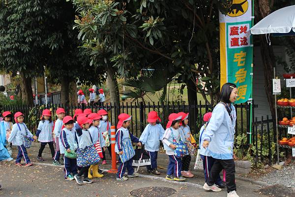 幼稚園に戻ってきてお弁当を食べたら、次はお当番さんが交番へ出発です