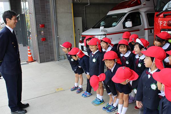 本物の消防士さんを目の前にみんな少し緊張の様子です