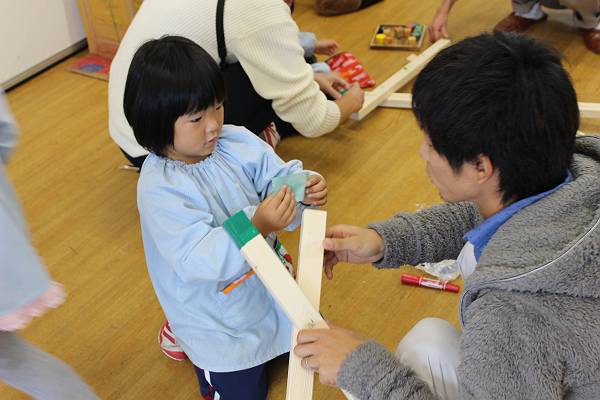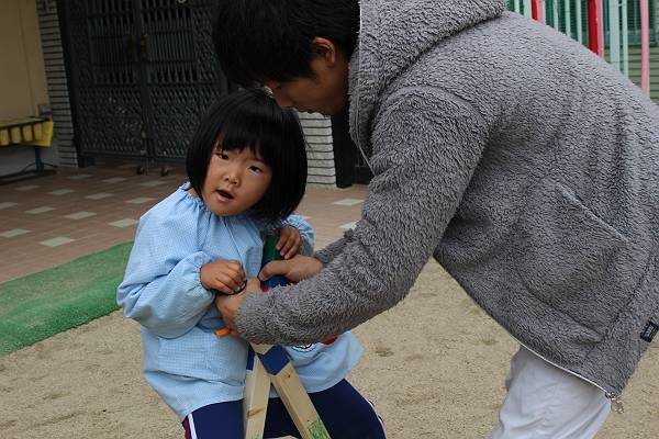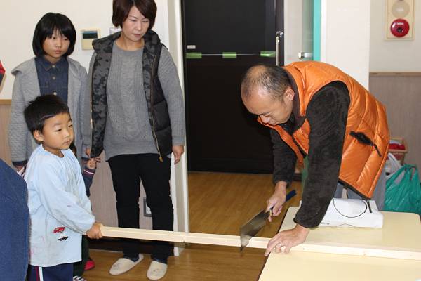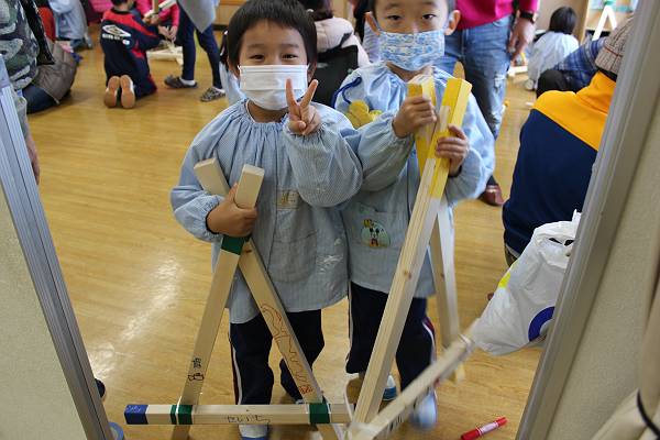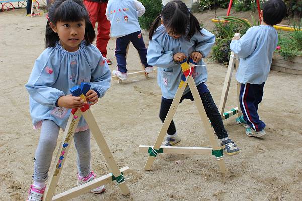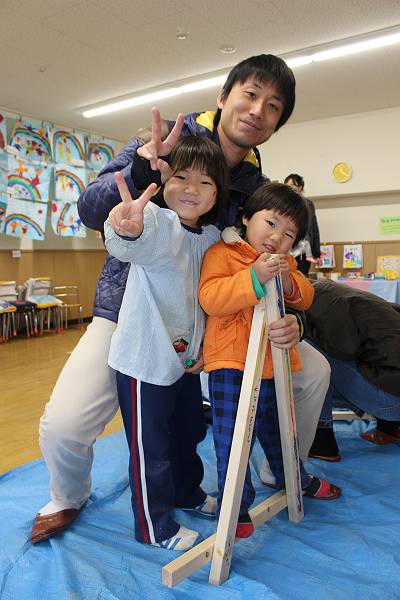 こちらはお父さん、お母さんと三角木馬を作ります!