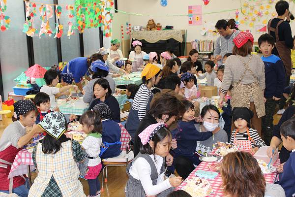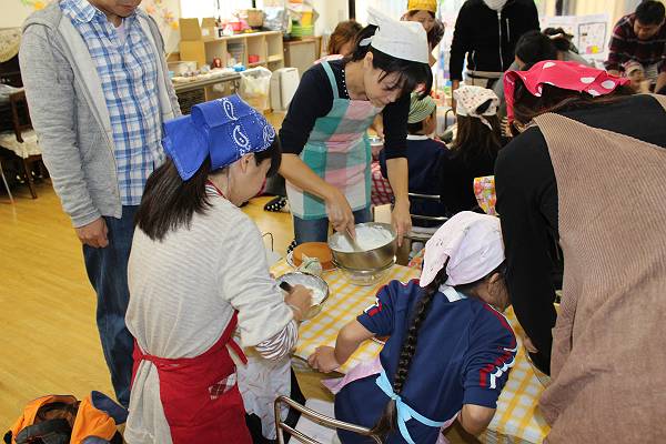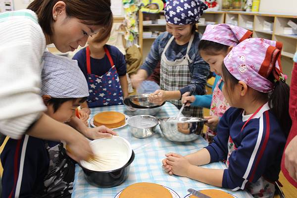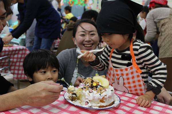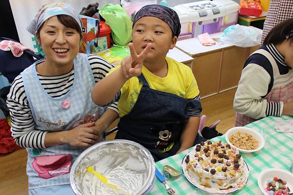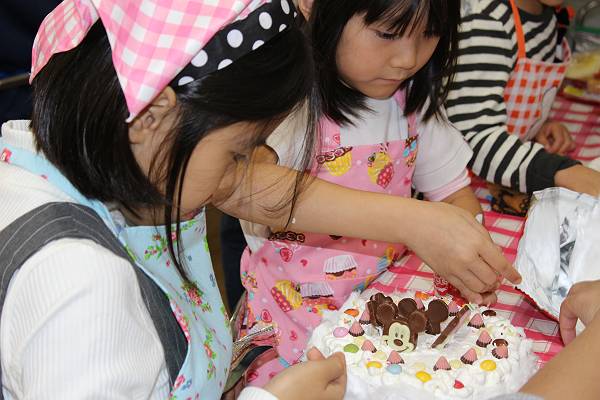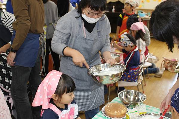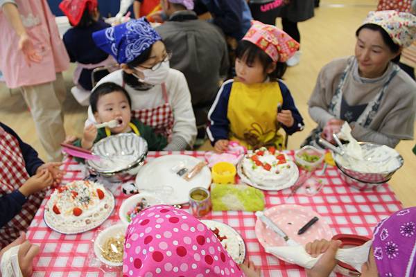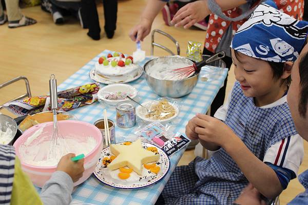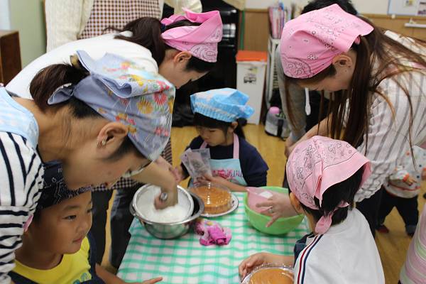 一組さんも二組さんもお父さん、お母さんと一緒にケーキ作り。とってもたのしかったね
