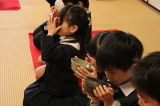 園長先生のお話を聞いたり、お茶と茶団子をいただいたりと