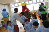 怖い鬼さんが来るのかと思いきや、面白い青鬼さんが保育室にやってきましたよ