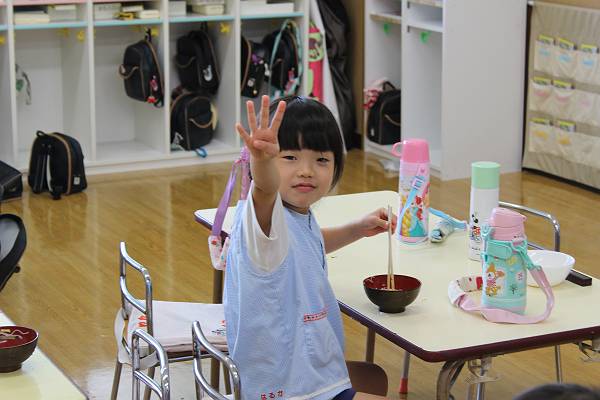 さてさて緑組さんは運動会の練習から戻ってきておなかぺこぺこ