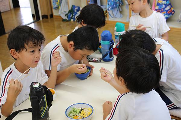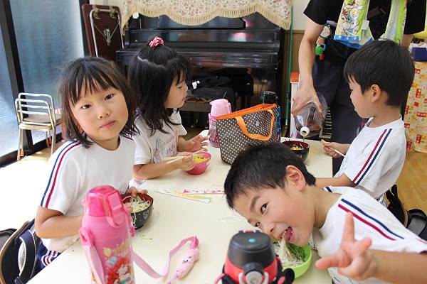 そうめん会食です。母の会のお母さん方が中心になり準備をすすめてくださり、みんなで一緒におそうめんをいただきました★