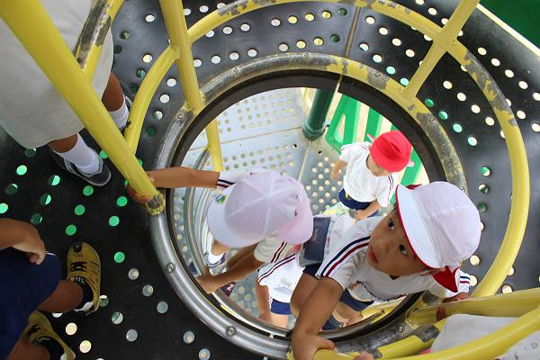 高いところも少しもこわがることなく、どんどんのぼって滑り台にチャレンジしていました