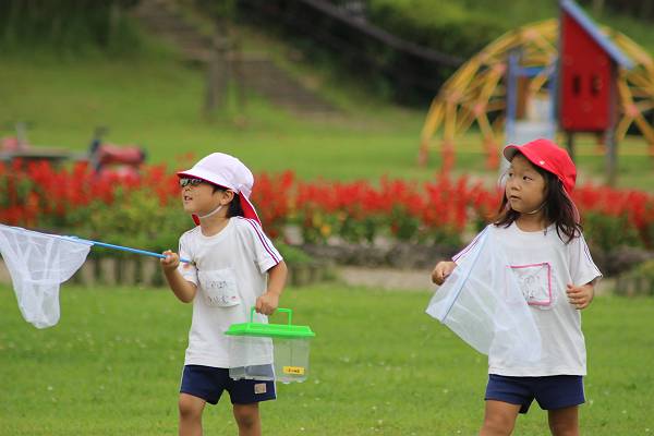 かごいっぱいにつかまえているお友達や、すばやいトンボをさっとつかまえるお友達もいて先生もびっくり!