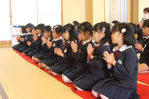 ののさまに手を合わせて、園長先生や担任の先生のお話も背筋を伸ばしてしっかり聞くことができました!