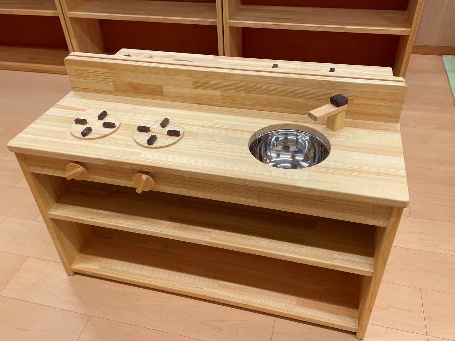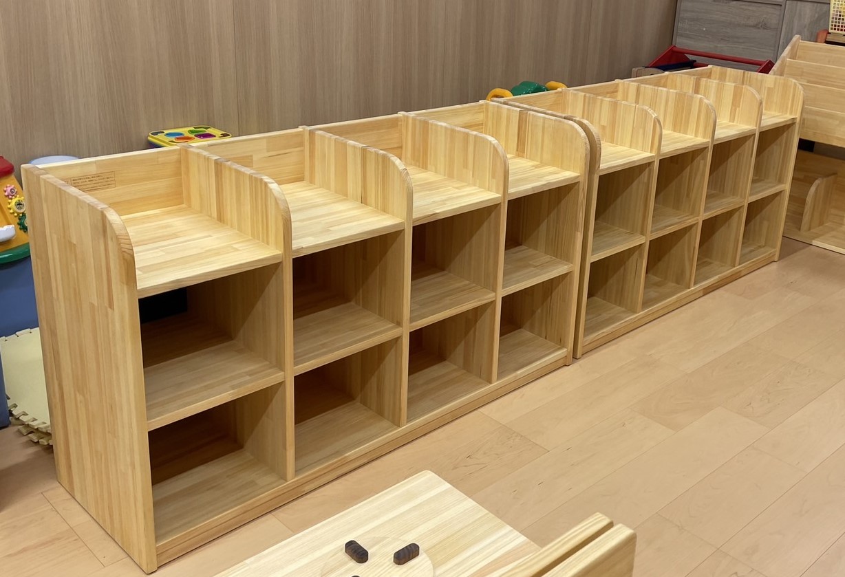 京都府内産のひのきを使ったおもちゃだな・キッチン・本棚・ままごとちゃぶだい・木のボールプールがお部屋にやってきましたよ!