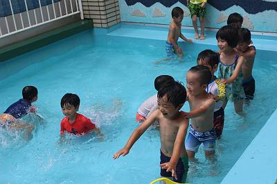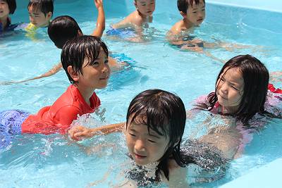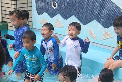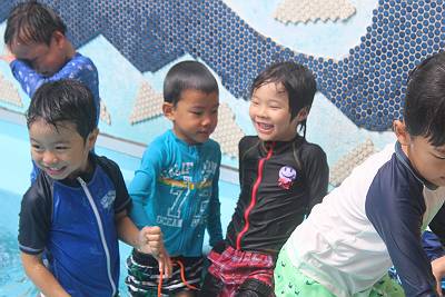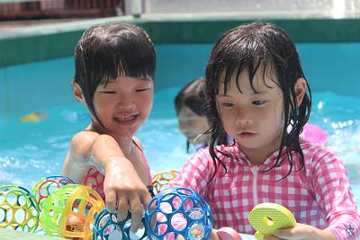 最後はプール遊び!お水の量も増やして
