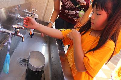 お水で洗うとお米はきれいになるんだ!