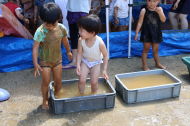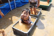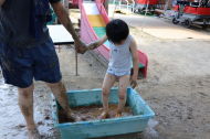 泥を触って匂いで見ていっぱいどろんこになるぞ~!