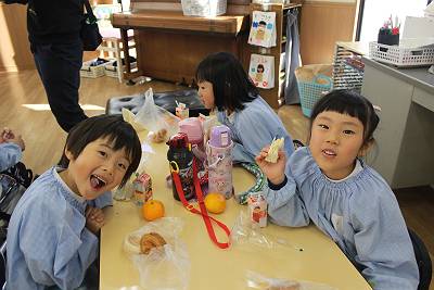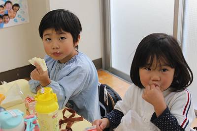 皆の大好きなものばかりで、お友達とにっこり顔を見合わせて食べていました