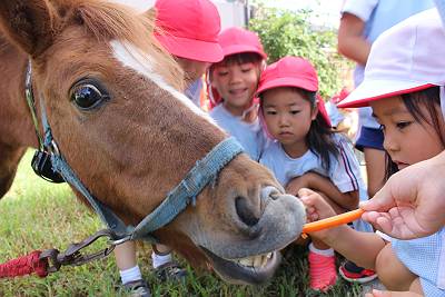 園庭の至る所でたくさんの動物さんたちと触れ合いました♡