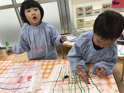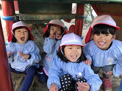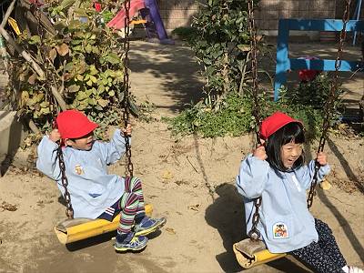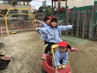 朝登園するとまずはお外遊びから!朝のご用意もとっても早くなりました!