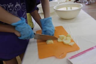 買ってきたお野菜はお泊まり保育の日にみんなで切りました