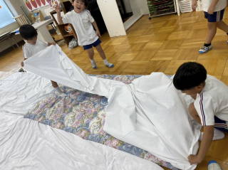 お布団をひいたり・・・