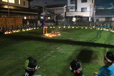 夜には作ったランタンを持ってキャンプファイヤー