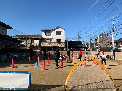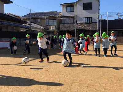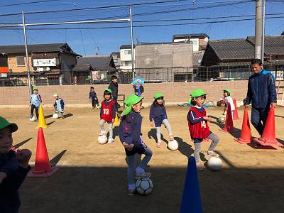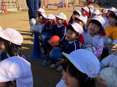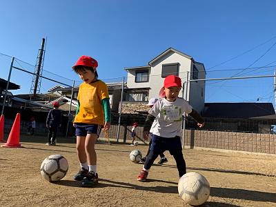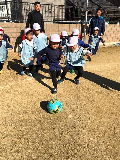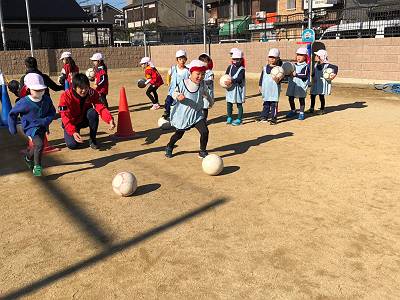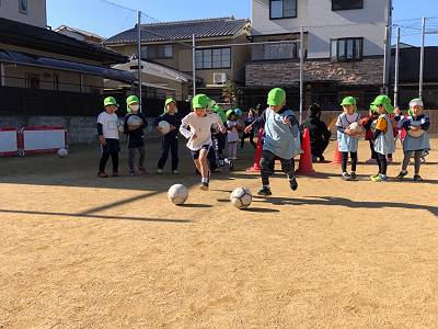 とってもいいお天気の中でサッカー体験スタートです