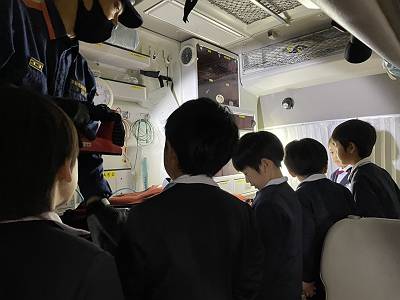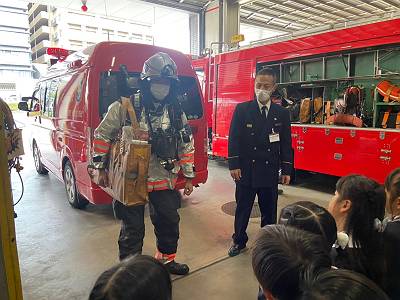 次はお待ちかねの消防車の見学です