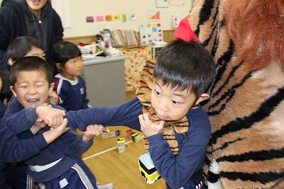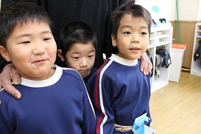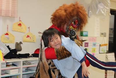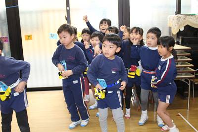 「自分のなかに悪い心(お話を聞けない心、自分だけでよいと思う心)が出来た時は鬼は外でやっつけるんだ。これからもお友達や先生と助け合ってすてきなクラスにしてね」