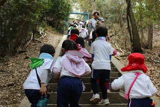登山口では園長先生からスーパー黄組さんになる為の大切なお話