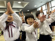 幼稚園大会ではまず市長さんとなんでもコンテストのお歌とダンスをしました