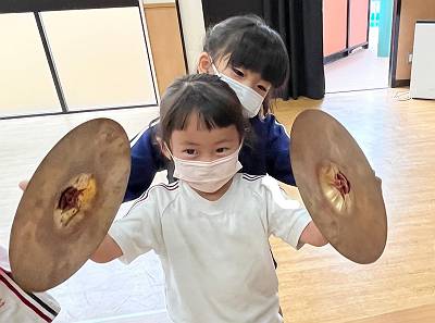 初めは少し緊張ぎみの黄組さんでしたが、音を鳴らすことの楽しさを感じていました![]()