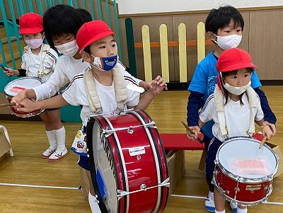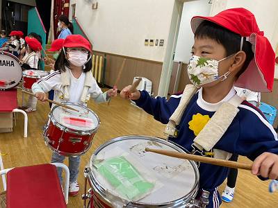 今日は黄組さんと緑組さんで鼓笛隊遊びをしました![]()