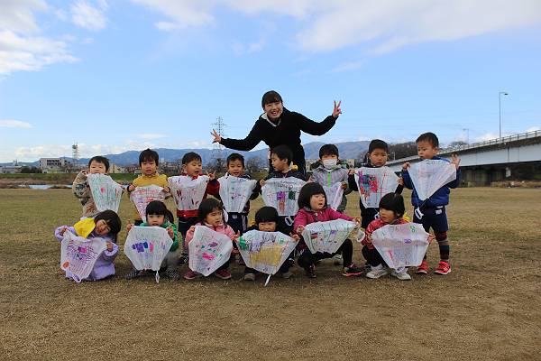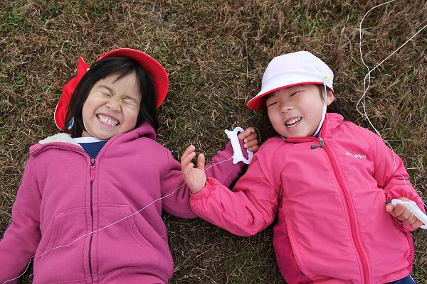 凧を片付けた後も、楽しくってにこにこのみんなです。