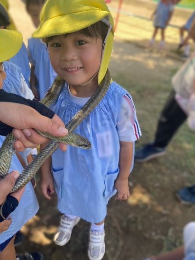 なんと!!なかには、蛇にさわったり、首に巻いたりしているお友達もいました