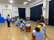 最後には大太鼓、小太鼓、シンバルのしたい楽器を好きなだけ叩きました!