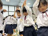 その後音楽に合わせてリングバトン、太鼓や組体操等を黄組さんもやってみました