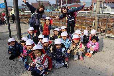 電車は、お友達と支え合って、こけないように気を付けてね!!