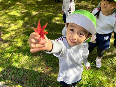 「先生みてみてー!!」と綺麗な葉っぱやどんぐりを沢山見せてくれました